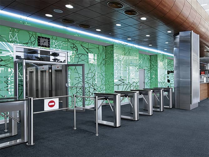 Ограждения серии PERCo-BH02 выполнены в едином дизайне с турникетами PERCo и легко интегрируются с ними. Более 20 типов элементов ограждений позволяют сформировать зону прохода любой необходимой конфигурации, исходя из размеров вестибюля и его планировки. Конструкция прямых и поворотных патрубков делает монтаж ограждений простым и позволяет создавать конфигурации ограждения с поворотом секций на требуемый угол.