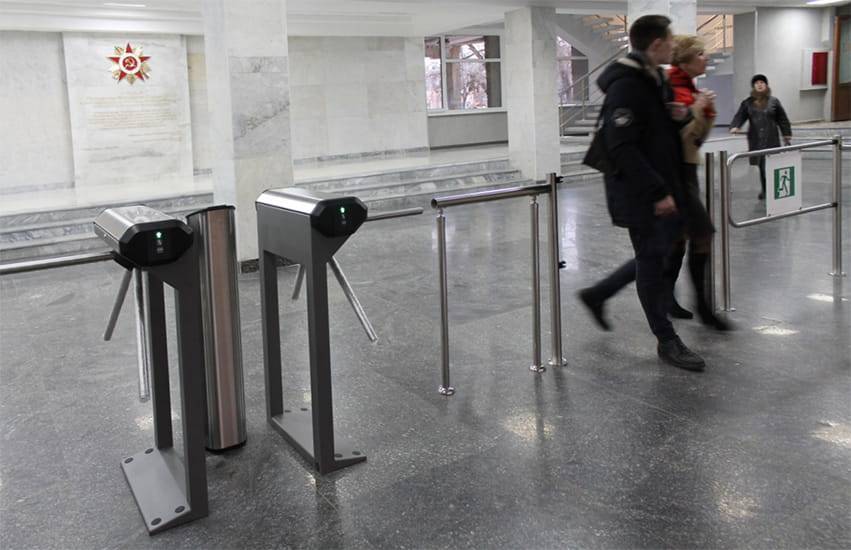 Механическая секция «Антипаника» позволяет освободить широкий проход (1,2 м) с помощью ручной разблокировки стопорного механизма. При необходимости секции «Антипаника» обеспечивают возможность проноса крупногабаритных грузов и проезда инвалидных колясок.