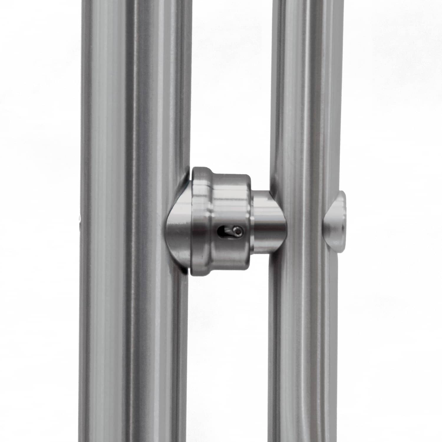 2. На обеих стойках секции закрепите винтами М8×30 по два патрубка для крепления поручней. Винты входят в комплект поставки патрубков.