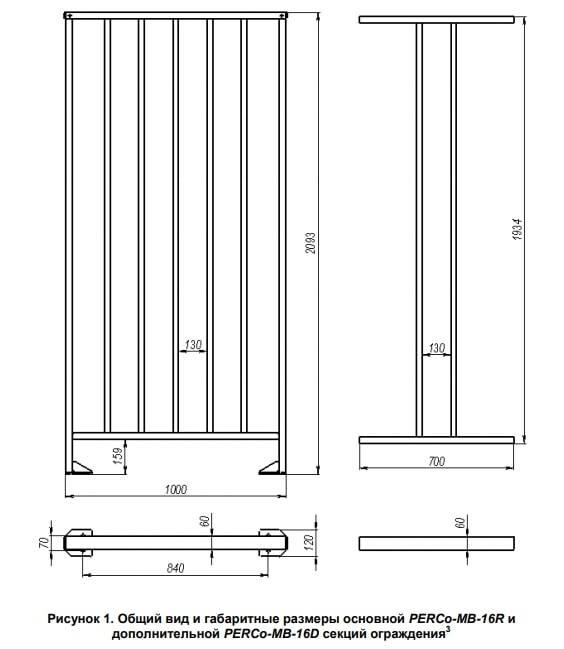 • Дополнительная секция ограждения PERCo-MB-16R:1 шт.