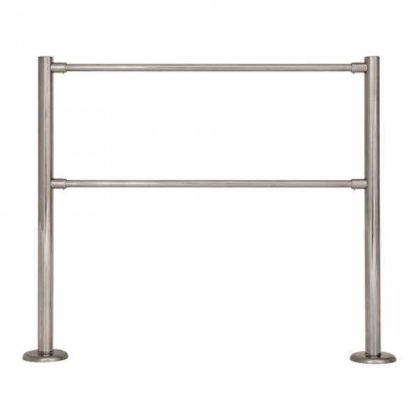 Типовое стационарное ограждение состоит из двух стальных стоек с унифицированными крепежными узлами (муфтами) и двух горизонтальных перемычек диаметром 25мм (верхней и нижней).