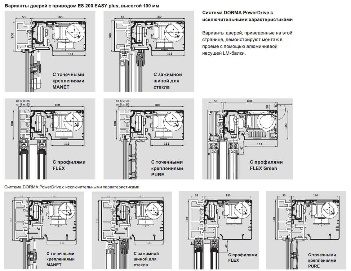 Варианты дверей с приводом ES 200 Easy plus, высотой 100 мм