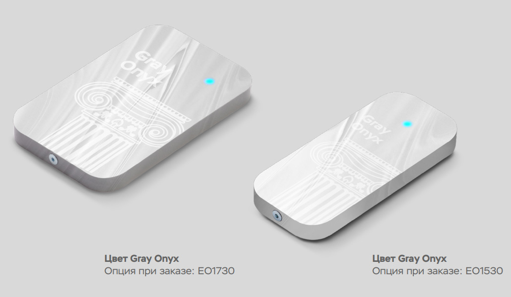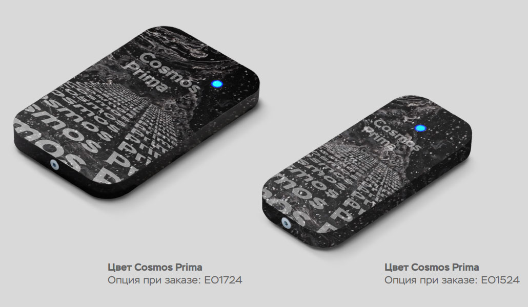 Мультиформатный считыватель в корпусе светло-серого цвета Silverite из искусственного камня Corian с базовой гравировкой и базовой конфигурацией.