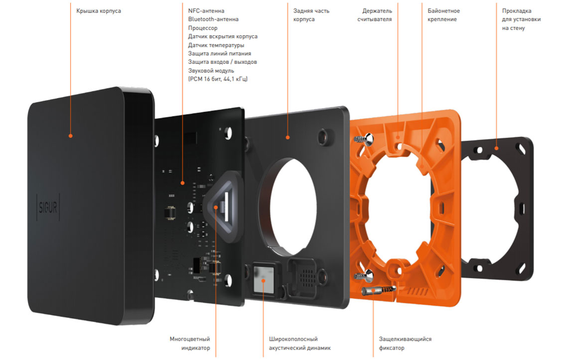• Если что-то идет не так — например, злоумышленник пытается оторвать считыватель от стены, устройство сообщит об этом системе благодаря встроенным датчикам открытия корпуса и температуры.