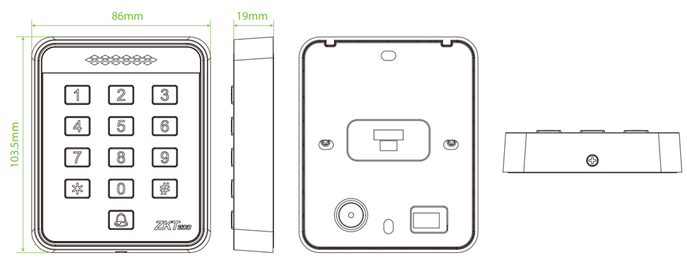 • Режимы проверки: только карта / только пароль / карта и пароль 1 реле / 1 датчик двери / 1 кнопка выхода / 1 дверной звонок