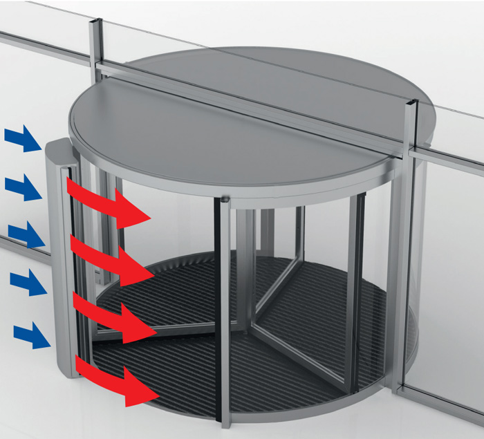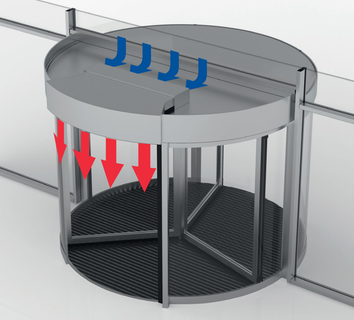 Воздушная завеса действует как воздушный барьер, который сводит к минимуму затраты на отопление и охлаждение. Она доступна в потолочном или отдельно стоящем вертикальном исполнении и располагается на внутренней части дверного проема. В качестве альтернативы стандартному оборудованию, предлагаемому с завода, может потребоваться разработка индивидуального исполнения при сотрудничестве с техническими проектировщиками и изготовителем воздушной завесы (в зависимости от индивидуального применения).