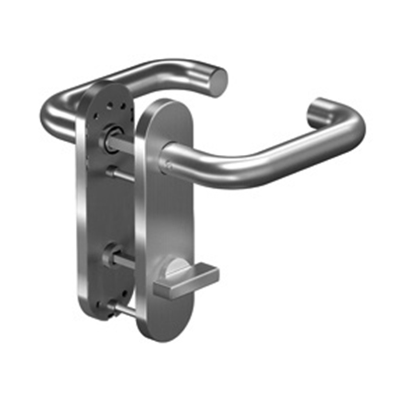 Стальная монтажная пластина ручки помогает надёжно передать даже очень большую нагрузку на дверную створку, защищая конструкцию ручки и замка.