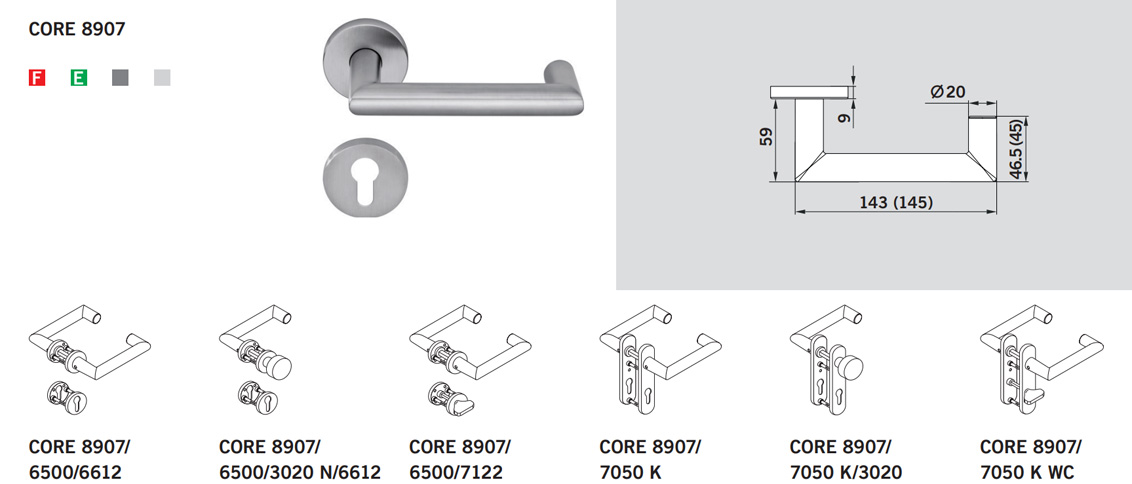Вся фурнитура CORE Series соответствует стандарту BS EN 1906, категория использования класс 4. Идеально подходит для помещений с высокой проходимостью.