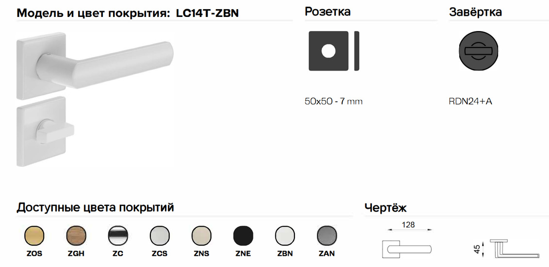 • LC14T ZBN с сантехнической заверткой (без инд.), 38-55 мм, шп. 8 мм, цвет белый (8010726)