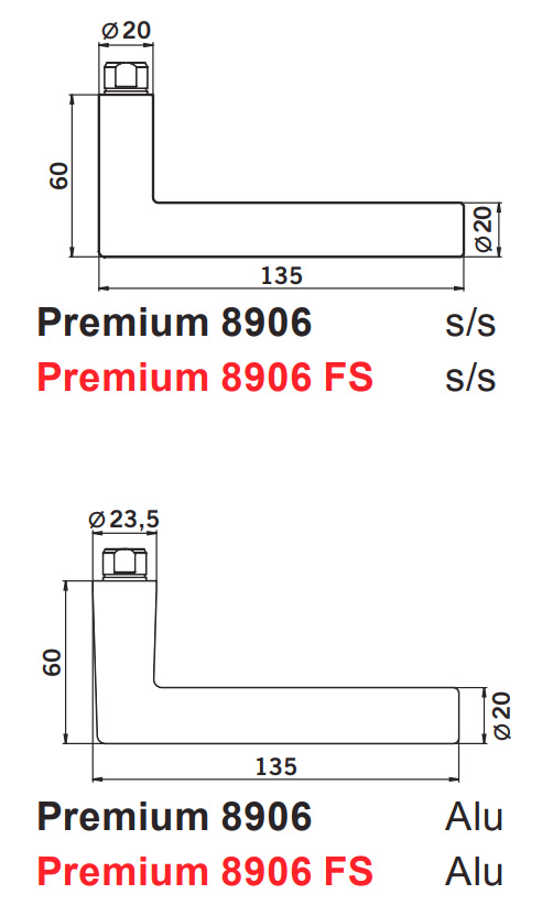 Все модели Premium оборудуются четырьмя пружинами для надежного возврата ручки в горизонтальное положение. Комплекты ручек Premium для деревянных дверей поставляются в стандартной комплектации с подпружиниванием на одной стороне двери. Комплекты для установки на узкие вертикальные брусья обвязки имеют подпружинивание на обеих сторонах двери. При необходимости могут быть предоставлены альтернативные комбинации. Все возвратные пружины универсальны.