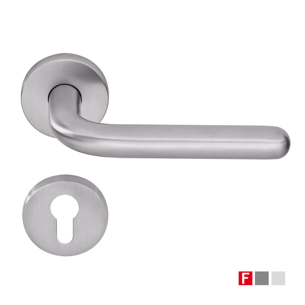 Основной комплект фурнитуры состоит из нажимной ручки с розеткой/накладкой, накладок на цилиндр и шпинделя квадратного сечения, которые могут гибко комбинироваться в различных сочетаниях.