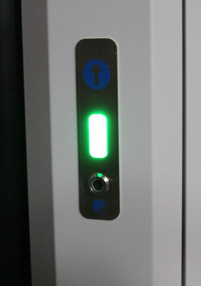 • Антиизоляция при нажатии кнопки «Антипаника», установленной внутри кабины,электромагнит внешней двери разблокируется, позволяя открыть внешнюю дверь вручную, звучит соответствующее сообщение