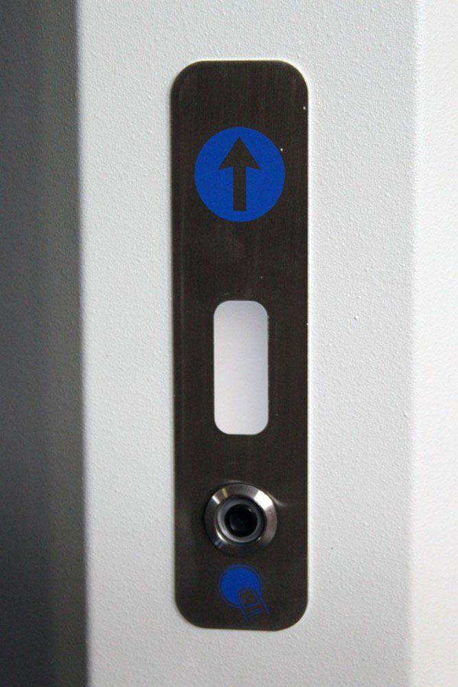Внутри шлюзовой кабины «SAIMA-БЛОКПОСТ» и «БЛОКПОСТ» установлена кнопка в антивандальном корпусе, при нажатии на которую происходит разблокировка входной двери кабины. Такое устройство предусмотрено на тот случай, если посетитель, оставаясь внутри кабины с закрытыми дверями, начинает волноваться, считает, что кабина неисправна и следует «аварийно» покинуть шлюзовую кабину. В этой ситуации при использовании кнопки «Антипаника» произойдет открывание входных дверей шлюзовой кабины, и посетитель сможет покинуть кабину.