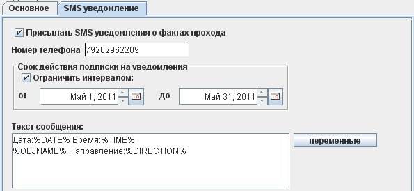 Интервал действия услуги SMS информирования задается в программе независимо для всех учащихся.