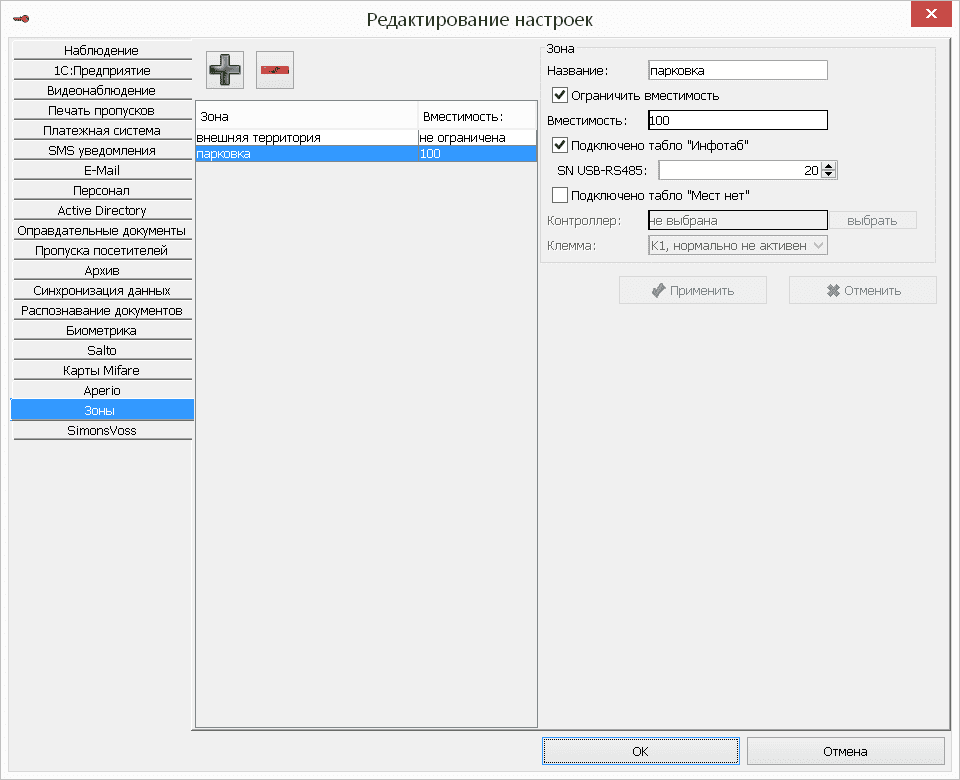 Ограничение вместимости зоны