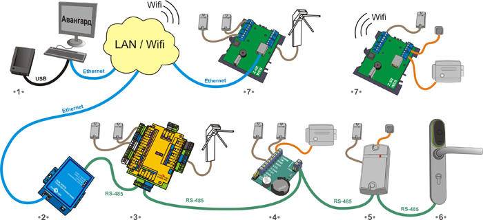 Вариант подключения оборудования для работы с ПО "АВАНГАРД"©