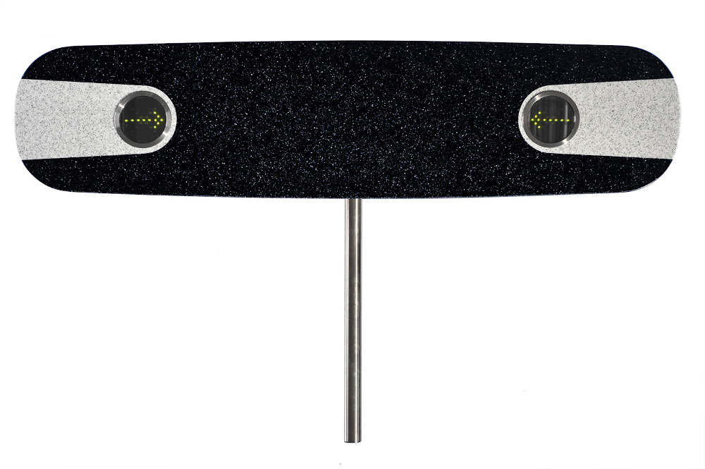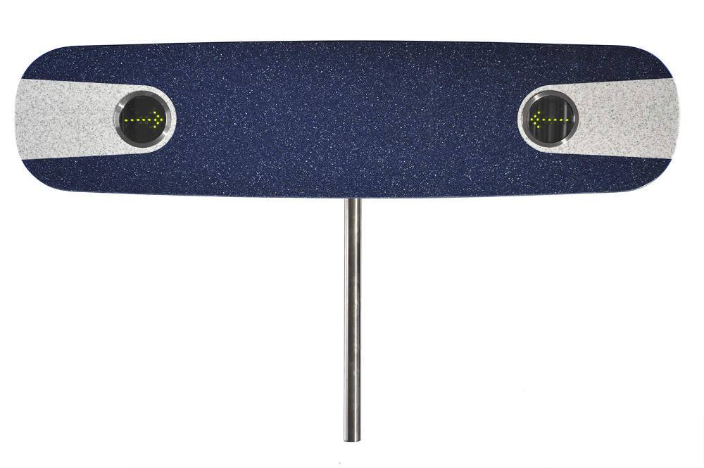 Крышка стойки этой модели турникета радиопрозрачна, что обеспечивает возможность скрытой установки бесконтактных считывателей системы контроля доступа внутри стойки. Рабочая зона считывателей выделена на крышке цветом.