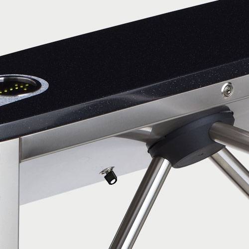 • В турникет встроен замок механической разблокировки, позволяющий в случае необходимости с помощью ключа разблокировать его (обеспечить свободный поворот преграждающих планок).