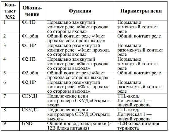 Подключение турникета к контроллеру СКУД осуществляется в соответствии с табл. 3 через разъем XS2 модуля IB v1.1.