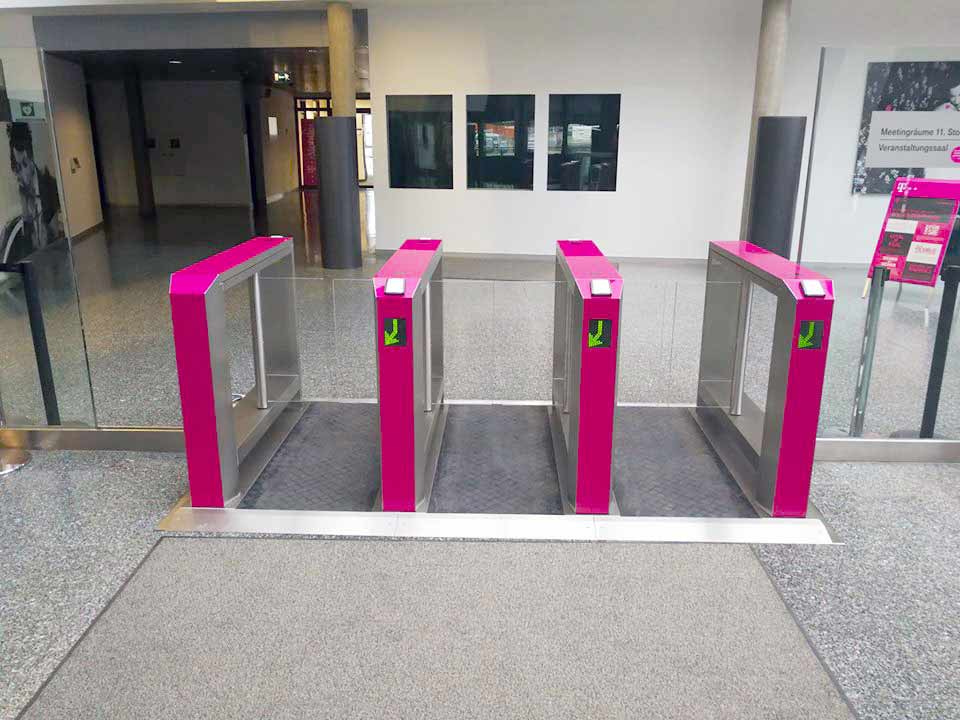 Моторизованные барьеры представляют собой корпуса, формирующие проход и оснащенные системой сенсоров, и интегрированными поворотными моторизованными створками. Створки могут быть нормально открытыми или нормально закрытыми (опционально). Возможно двухстороннее направление прохода. Десять встроенных оптических сенсоров на каждый проход надежно защитят вход от несанкционированного доступа. На передней стойке корпуса размещена скошенная пластина, предназначенная для размещения считывателя или индикации.