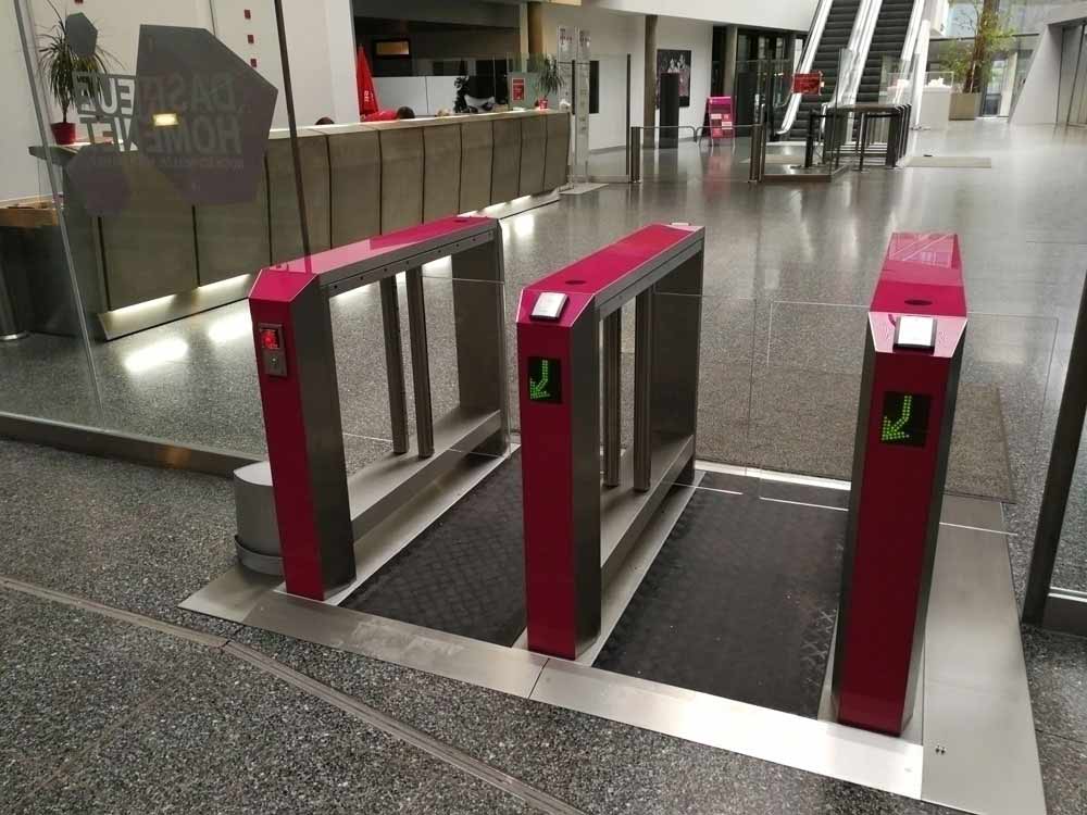 Турникет выполнен из нержавеющей стали и акрилового стекла, имеет презентабельный вид и современный дизайн. Он удобен для прохода с детскими и инвалидными колясками, а также объемным багажом. При необходимости турникет может быть оборудован дополнительными функциональными аксессуарами.