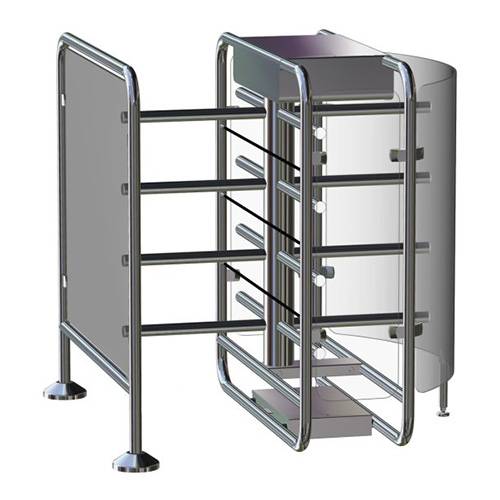 Турникет прост в обслуживании и гарантирует высокую степень безопасности за счет того, что блок управления и роторный двигатель расположены в верхней части турникета. По всем характеристикам эта модель значительно превосходит аналогичные турникеты с ротором в нижней части.