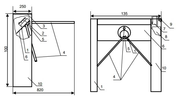 • Стойка турникета ТРТ-14-02 c кабелем: 1 шт.