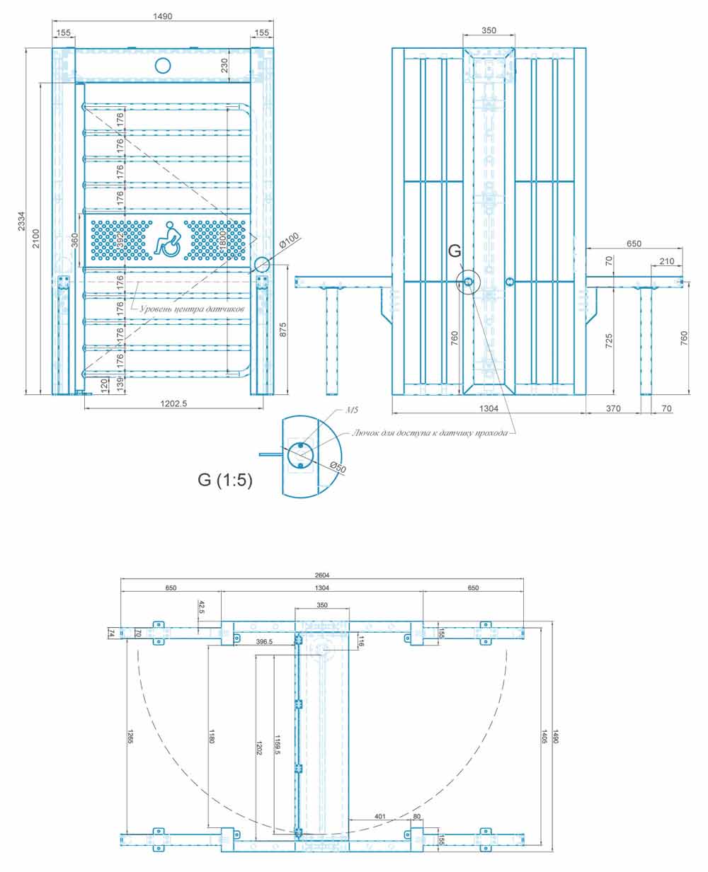 • Надежная безопасная конструкция — сварная рама из нержавеющей стали, защита от пыли/влаги IP 54. Установка в помещениях и на улице (требуется навес). Отсутствуют травмоопасные элементы для маломобильных групп населения. Световой сигнализатор направления прохода.