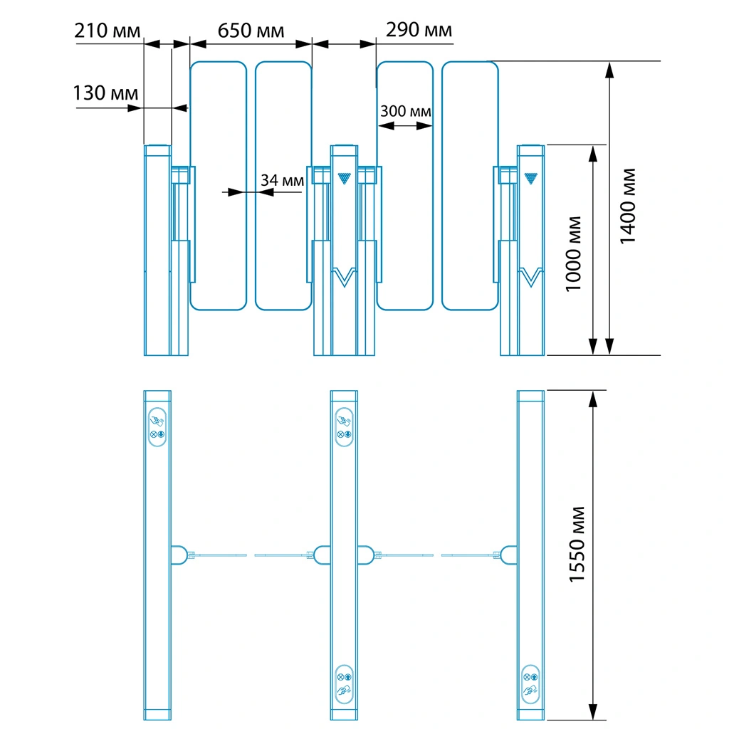 - Увеличенная длина тумбы турникета до 1550 мм для комфортного прохода