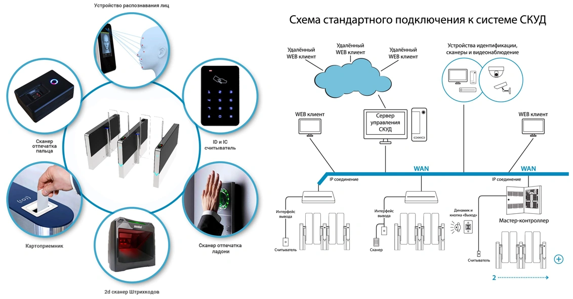 - Интеграция с различными системами контроля доступа, в том числе с биометрическими сканирующими устройствами, радиочастотными идентификаторами и прочими устройствами идентификации