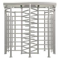 Двухпроходной автоматический полноростовой турникет с корпусом, ротором и преградами из оцинкованной окрашенной стали. Три сектора по 120 град. или четыре сектора по 90 град. (на выбор).