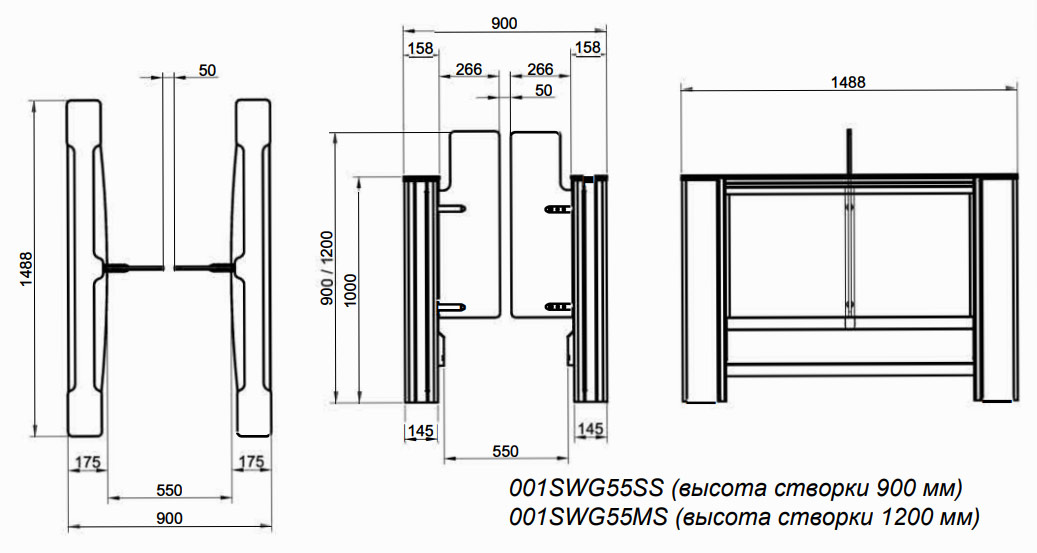 • SWG90 - ширина прохода 900 мм, скорость открытия створок 0.8 - 1.2 секунды