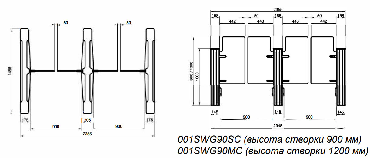 • SWG90 - ширина прохода 900 мм, скорость открытия створок 0.8 - 1.2 секунды