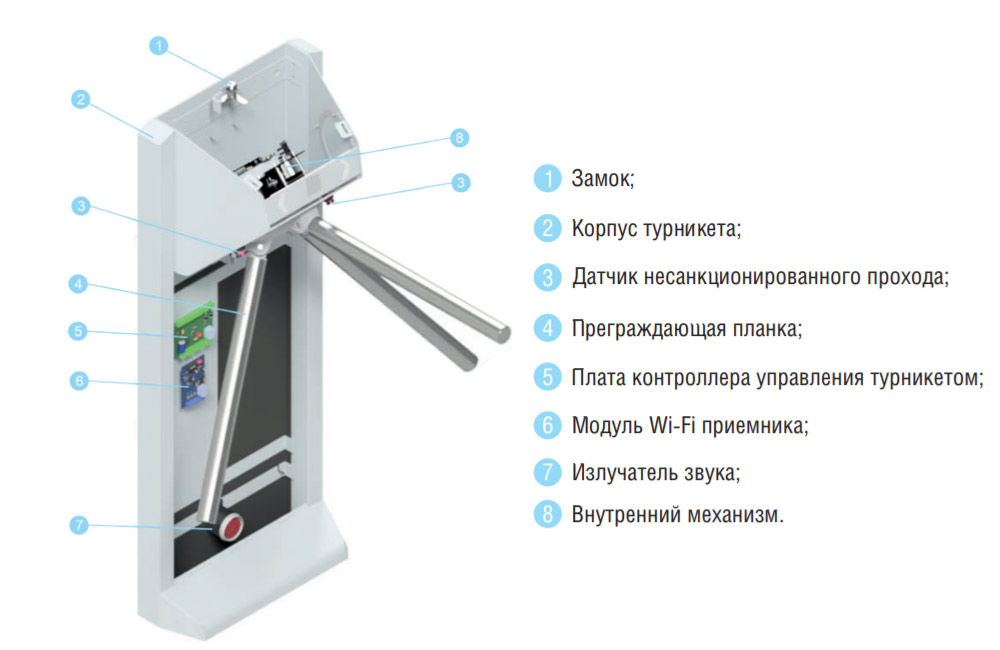 • Долговечный блокирующий механизм позволяет добиться длительной безотказной работы турникета при интенсивном использовании.