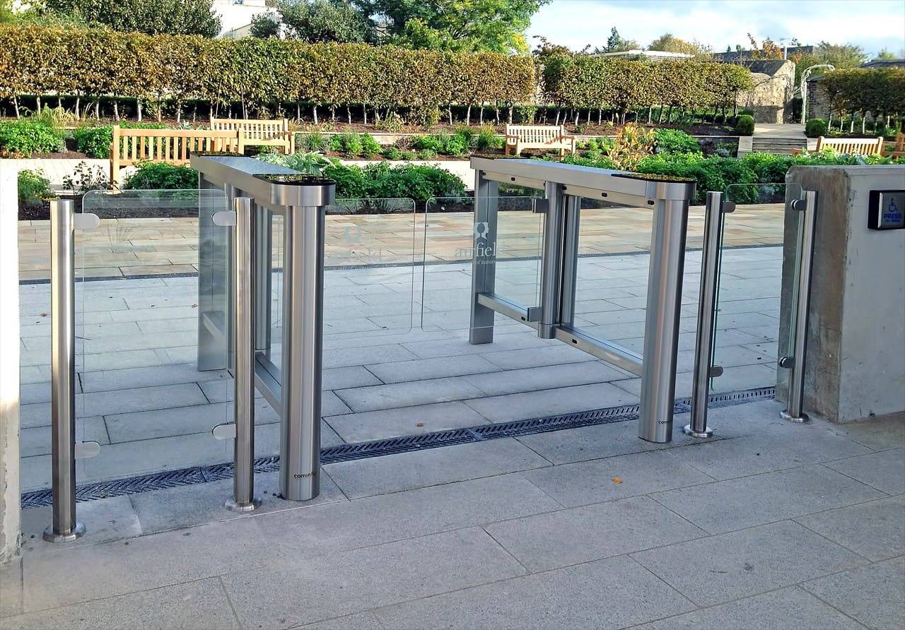 Проходная зона с распашными створками представляет собой сочетание тонкого корпуса турникета и высокоскоростного мотора. Наши дизайнеры постарались объединить возможность установки турникета в любом помещении и возможность установки дополнительного оборудования. Помимо этого, наша технология позволяет устанавливать турникеты как в помещении, так и на улице. Также покупатель может выбрать размер корпуса и высоту барьерного стекла, что позволяет турникетам EasyGate стать идеальным решением для различных проектов.