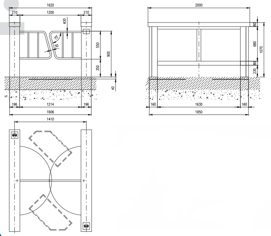 Тип корпуса турникета | Однопроходной, Тумбовый, Напольный |