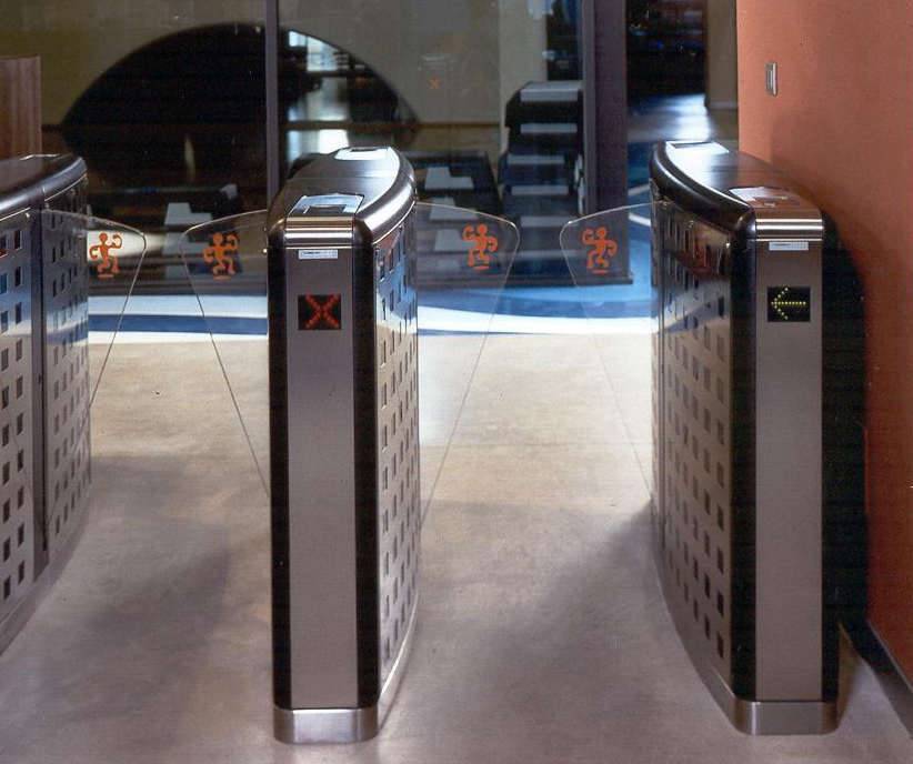 С помощью мотора постоянного тока створки убираются в корпус турникета, освобождая проход, или наоборот - блокируют его. Микропроцессорный блок обеспечивает управление движением и точное позиционирование створок.