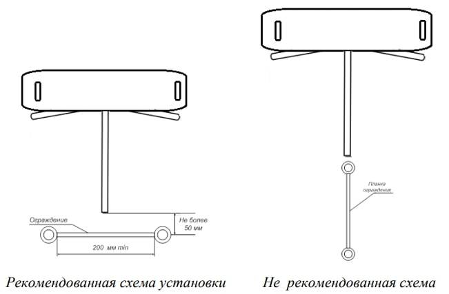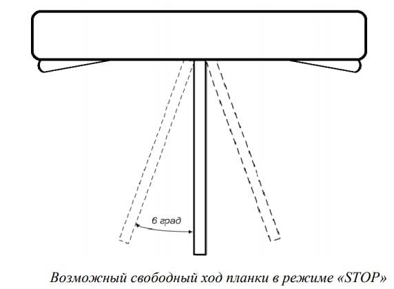 При установке турникета необходимо учесть возможный свободный ход планки, в режиме STOP,он составляет по 6 градусов в каждую сторону.