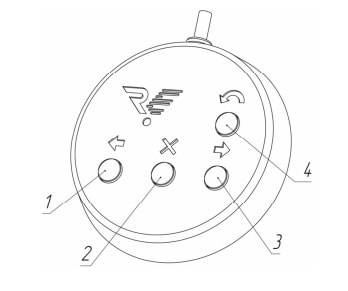Корпус пульта управления выполнен из шлифованной нержавеющей стали. На лицевой стороне расположены кнопки управления 1 - 4 и светодиодные индикаторы режимов работы турникета.