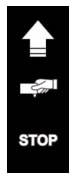 На лицевой панели пульта дистанционного управления расположены три кнопки для задания режимов работы электронной проходной. Средняя кнопка STOP предназначена для блокирования возможности прохода через электронную проходную в обоих направлениях. Левая и правая кнопки LEFT, RIGHT предназначены для разблокировки электронной проходной в выбранном направлении. Над кнопками расположены световые индикаторы для индикации установленного режима работы электронной проходной.