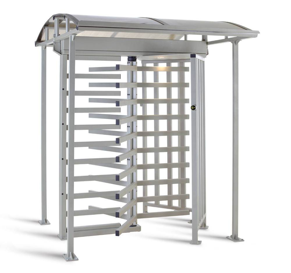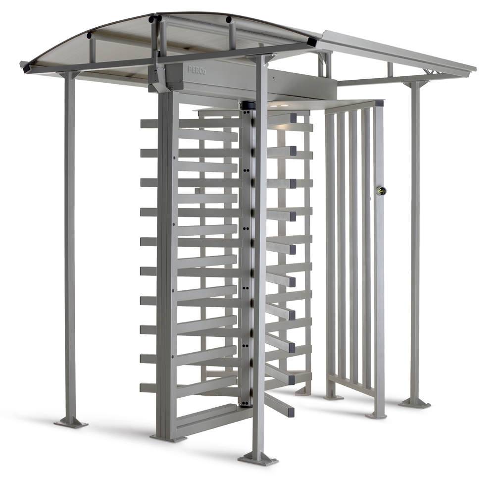 Дополнительная защита турникета от атмосферных осадков и попыток проникновения через его верх, достигается опциональной установкой крыши, соединяемой с турникетом в единую конструкцию.