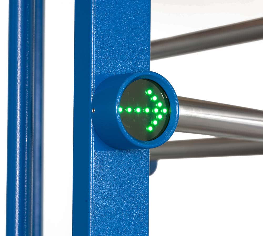 Турникет снабжен встроенными световыми индикаторами разрешения и запрещения прохода со светодиодами. Есть возможность подключения дополнительных выносных световых индикаторов.