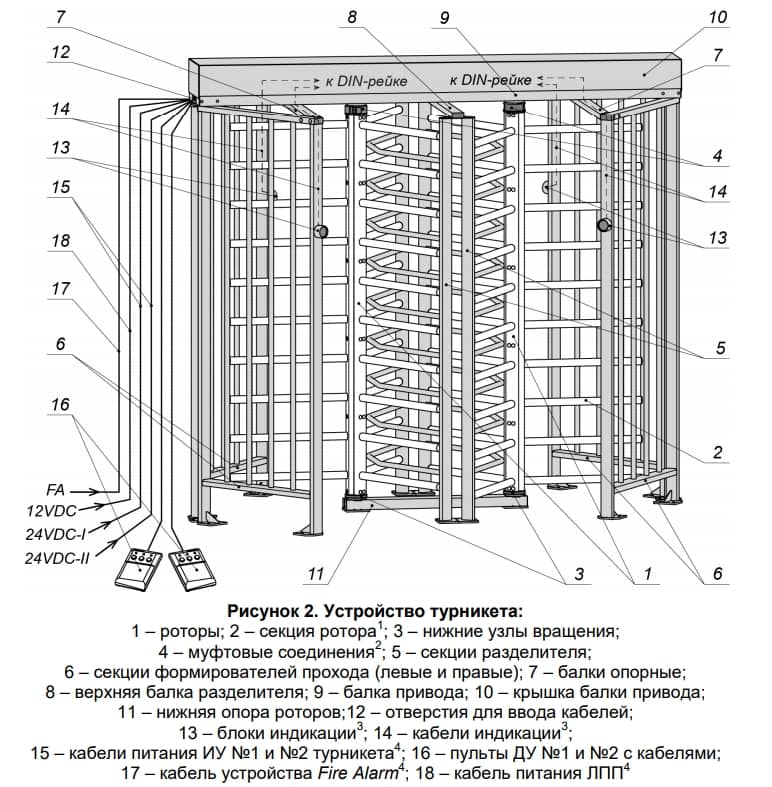 * Электроприводы исполнительных устройств турникета гальванически развязаны и должны иметь индивидуальные источники питания.