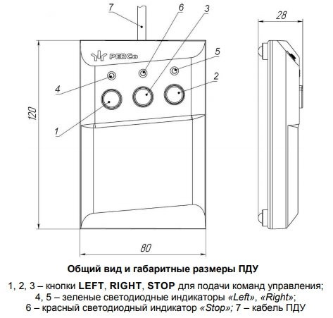 Обозначения кнопок и световых индикаторов пульта дистанционного управления показаны выше. При этом: После команды «Однократный проход в заданном направлении» турникет при помощи датчиков контролирует нахождение проходящего в зоне прохода. По завершению прохода турникет автоматически переходит в состояние, соответствующее команде «Запрет прохода».