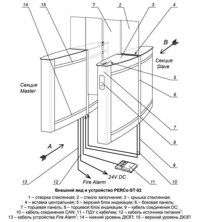 Турникет состоит из двух секций PERCo-ST-02.600/M (PERCo-ST-02.900/M) (секция Master) и PERCo-ST-02.600/S (PERCo-ST-02.900/S) (секция Slave).