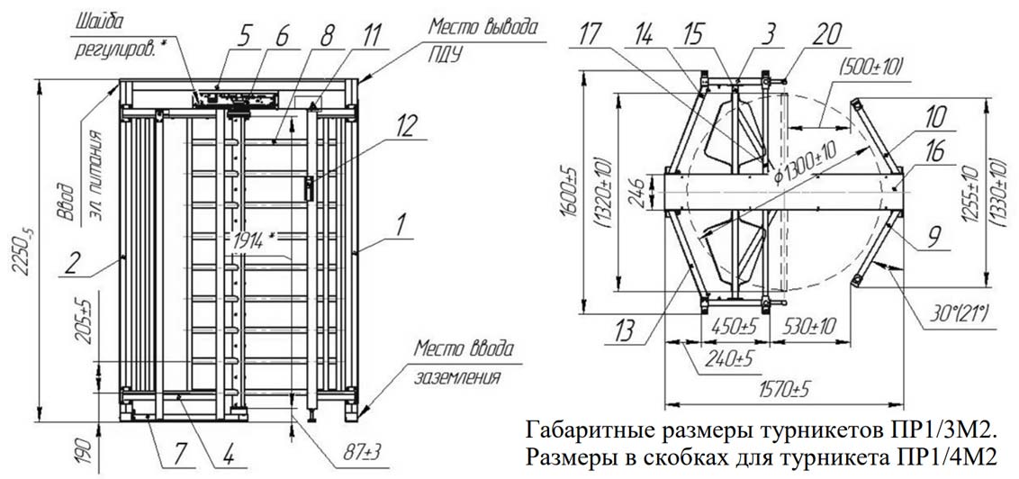 – установите на место крышку 16 (выполнить после подключения турникета и проведения режима калибровки) и закрепите винтами М4