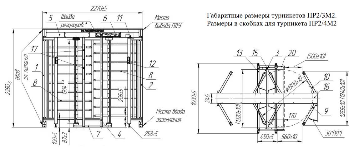 – установите на место крышки 16 (выполнить после подключения турникета и проведения режима калибровки) и закрепите винтами М4