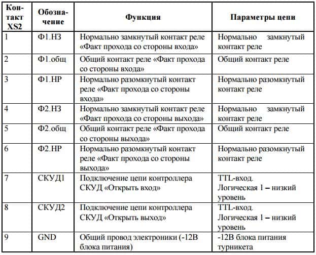 Подключение турникета к контроллерам СКУД осуществляется в соответствии с табл.3 через разъем ХS2 модуля IB v1.1.