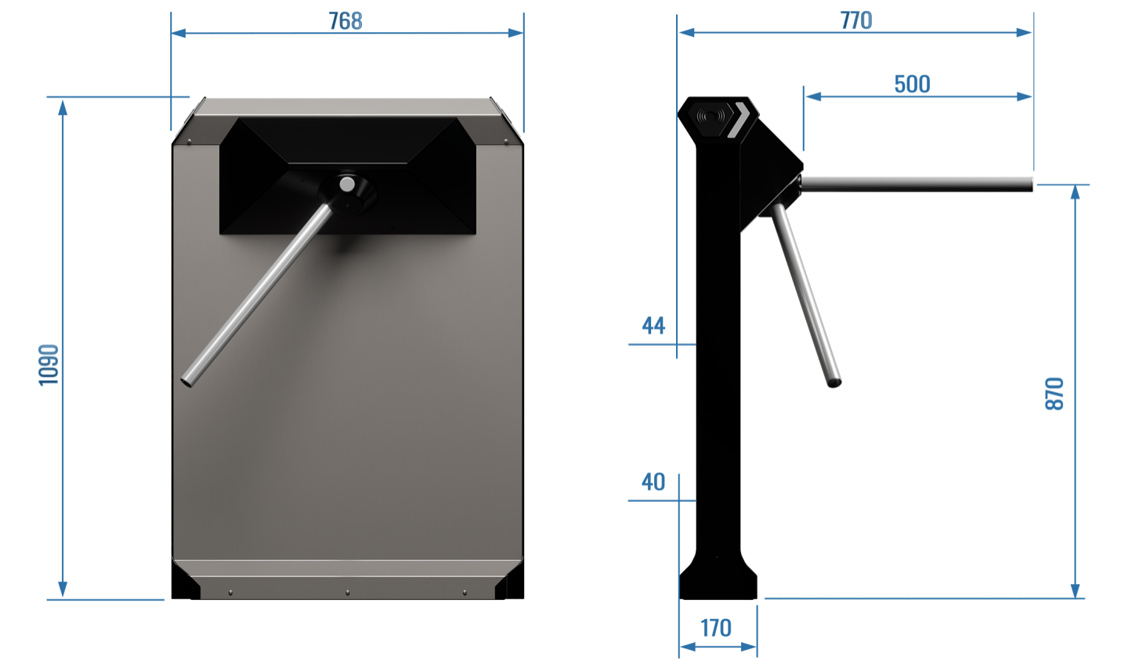 • Ширина перекрываемая габаритом турникета: 770 мм