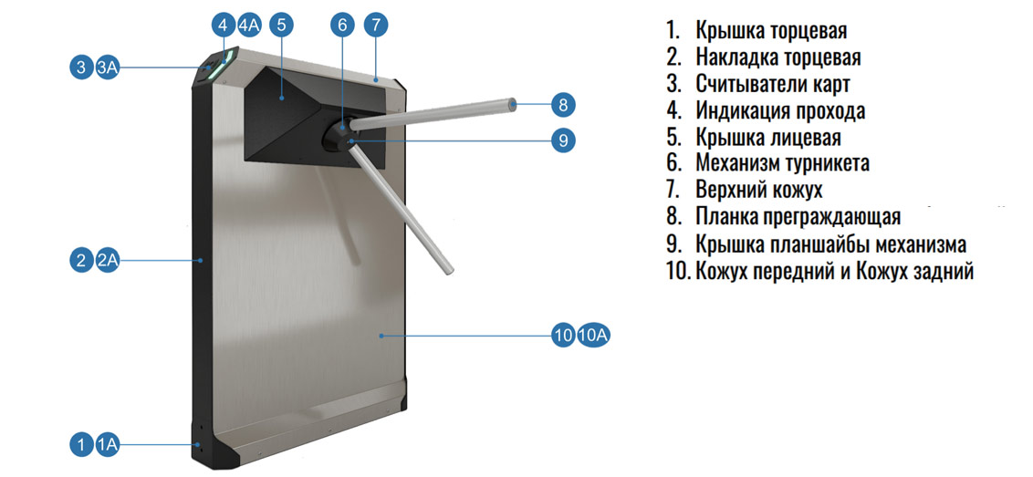 В стандартных условиях для доступа к основным узлам турникета демонтаж Кожуха заднего п. 10А не требуется. Однако, при необходимости, для его демонтажа достаточно выполнить последовательность действий, аналогичную демонтажу Кожуха переднего.
